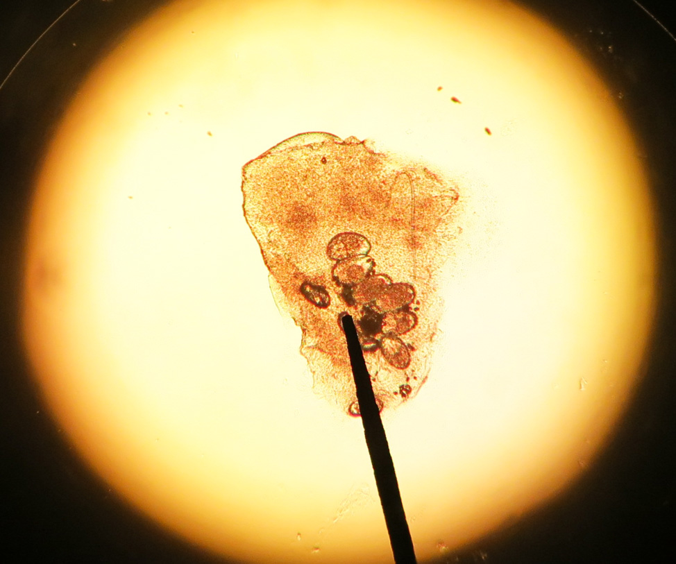 This mite can travel from the infected person to another person. Most people get scabies from direct, skin-to-skin contact. Less often, people pick up mites from infested items such as bedding, clothes, and furniture. The mite can survive for about 48 to 72 hours without human contact. Worldwide, there are millions of cases of scabies each year.